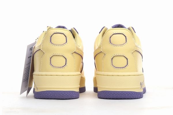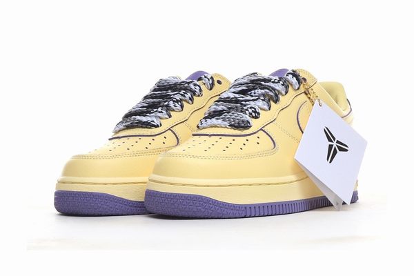 The Air Force 1 Low Kobe x Yellow Purple is a special-edition sneaker released to celebrate the life and legacy of Kobe Bryant. It merges the essence of a basketball icon with the expressiveness of urban fashion, resulting in a classic that balances emotional tribute with cutting-edge design. The shoe’s body is dressed in bold lemon yellow leather, bursting with life and energy—echoing the brilliance of Kobe’s career on the court. The leather is carefully finished for a premium texture and enhanced durability, making it ideal for daily wear. It also preserves its natural grain, giving the shoe a more authentic and inviting feel.