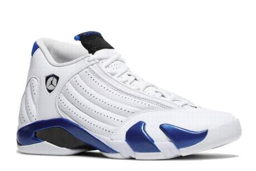 Air Jordan XIV(14) Hyper Royal The Air Jordan 14 was worn by Michael Jordan when he made a lore in the 1998 Finals. This battle is of special significance to the flying man’s road to the gods, so the Air Jordan 14 also has a different meaning in the Air Jordan series. Coming to 2020, 22 years later, this pair of Air Jordan 14 Retro Hyper Royal royal blue color matching shoes was re-enacted again. Air Jordan 14 Hyper Royal adds more cool colors to the luxurious design. With the familiar refreshing white base, it shows the unique texture and sharp lines of the Air Jordan 14 leather shoe body. In addition, it will have signature holes on the middle and side panels. This classic color scheme seems to be a must-have product for all Air Jordan 14 fans. In particular, the white leather upper has been upgraded to the same design as the Candy Cane model released last year to improve elasticity and breathability. Of course, the silhouette similar to a sports car and the Jumpman logo with Ferrari sensibility still exist. The entire pair of Air Jordan 14 Hyper Royal shoes is covered with a large area of white leather, and the tongue, heel and midsole are embellished with blue details, which are extremely eye-catching. Inspired by Ferrari's shoe body shape, it is also extremely fashionable. With this color combination, cheap jordans online the temperament is advanced and versatile. And this color matching resembles Reggie Miller PE, I believe it will be favored by many shoe fans. Air Jordan 14 Hyper Royal Style Code: 487471-104 Color: White / Hyper Royal / Black Release Date: September 19