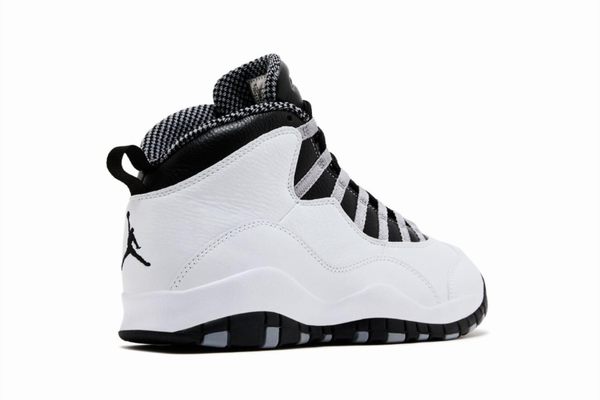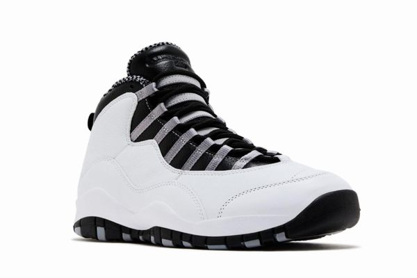 The Air Jordan 10 “Steel” 2025 features a streamlined yet potent line structure, utilizing white as its foundational hue, which is then enhanced by refined silver and black accents, resulting in a cool yet sophisticated visual impression. The upper is enveloped in a layer of sleek leather material, providing a delicate tactile sensation and commendable resistance to wear. The Jumpman emblem situated on the side of the shoe is rendered in silver, catching the light with a metallic sheen that underscores its premium status.