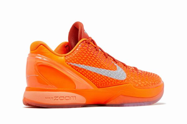 Zoom Kobe 6 Protro Total Orange is a signature shoe conceived for basketball players aiming for exceptional performance coupled with a distinct personal style. This particular iteration is distinguished by its vibrant orange color scheme, which not only mirrors Kobe’s inherent drive and energy but also instantly grabs attention on the basketball court.
